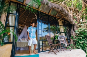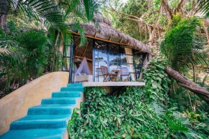 The Villa Besame Mucho (Kiss Me a Lot) at Amor Boutique Hotel is a charming air-conditioned 1 bedroom privately perched within our lush green Jardin de Besos (Kissing Garden). This romantic, magical villa will truly give you a sense of living in nature.