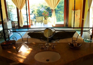 Villa Mi Primer Beso at Amor Boutique Hotel is an air-conditioned one bedroom luxury villa with a wonderful private wrap-around deck overlooking the green blue waters of the expansive Pacific ocean, pool and lush gardens. This ocean view luxury vacation rental Sayulita allows you to enjoy your coffee and take in the peaceful acoustics from the waves rolling in below.