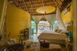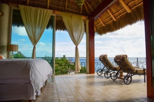 "My wife and I had the time of our lives staying in the Romance Villa at the Boutique Amor Hotel. Nestled into the side of a Mountain, lush with vegetation, the Vistas overlooking the bay and beach below are spectacular! The developer's keen sensitivity to preserving the natural surroundings was more than apparent, clearing only the vegetation absolutely necessary to allow for his structures, which allows every unit a secluded feel, bustling with the sounds of nature from the surrounding flora and fauna. The attention to detail was not lost on the placement of the structures. Every room in our Villa had a different entry door, rustic in appearance, in addition to over-sized, vintage chandeliers and light fixtures, all unique and hip, hanging from high ceilings. Our favorite bedroom features included: giant sliding doors that opened to the sprawling veranda, which, incidentally, included an over-sized wading pool, wetbar and plenty of comfortable patio furniture. Also, power outlets in the bathrooms that were concealed beneath the countertops. Our beds were made, fresh linens and towels every day from a more than friendly staff, who in addition to speaking English, appeared to boast some level of clairvoyance, as they seemed to know our daily routines and got everything done whenever we were away. Altogether, the resort was Top Notch, beyond reproach and for any who grow tired of walking by the end of the week, there are golf carts waiting for the guests to use. We had an incredible time and can't wait to return."