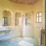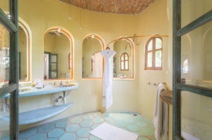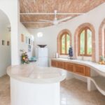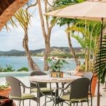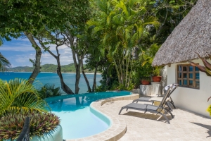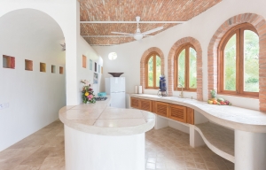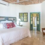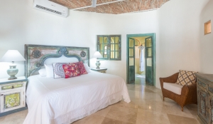 The master bedroom has a king sized bed and beautiful bathroom accented with brightly-painted antique windows and doors. The second bedroom is designed and situated for ultimate privacy away from the master suite, overlooking the ocean and private plunge pool.