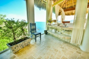 "My wife and I had the time of our lives staying in the Romance Villa at the Boutique Amor Hotel. Nestled into the side of a Mountain, lush with vegetation, the Vistas overlooking the bay and beach below are spectacular! The developer's keen sensitivity to preserving the natural surroundings was more than apparent, clearing only the vegetation absolutely necessary to allow for his structures, which allows every unit a secluded feel, bustling with the sounds of nature from the surrounding flora and fauna. The attention to detail was not lost on the placement of the structures. Every room in our Villa had a different entry door, rustic in appearance, in addition to over-sized, vintage chandeliers and light fixtures, all unique and hip, hanging from high ceilings. Our favorite bedroom features included: giant sliding doors that opened to the sprawling veranda, which, incidentally, included an over-sized wading pool, wetbar and plenty of comfortable patio furniture. Also, power outlets in the bathrooms that were concealed beneath the countertops. Our beds were made, fresh linens and towels every day from a more than friendly staff, who in addition to speaking English, appeared to boast some level of clairvoyance, as they seemed to know our daily routines and got everything done whenever we were away. Altogether, the resort was Top Notch, beyond reproach and for any who grow tired of walking by the end of the week, there are golf carts waiting for the guests to use. We had an incredible time and can't wait to return."