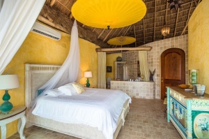 Villa Romance at Amor Boutique Hotel is the epitome of ocean front luxury and tranquility. It’s one of the best Sayulita luxury 3 bedroom ocean view vacation rentals, bar none. Situated on the top level of our resort, this expansive 3 bedroom Sayulita ocean view suite has it all. Two en-suite master bedrooms, and a third bedroom with 2 twin beds.